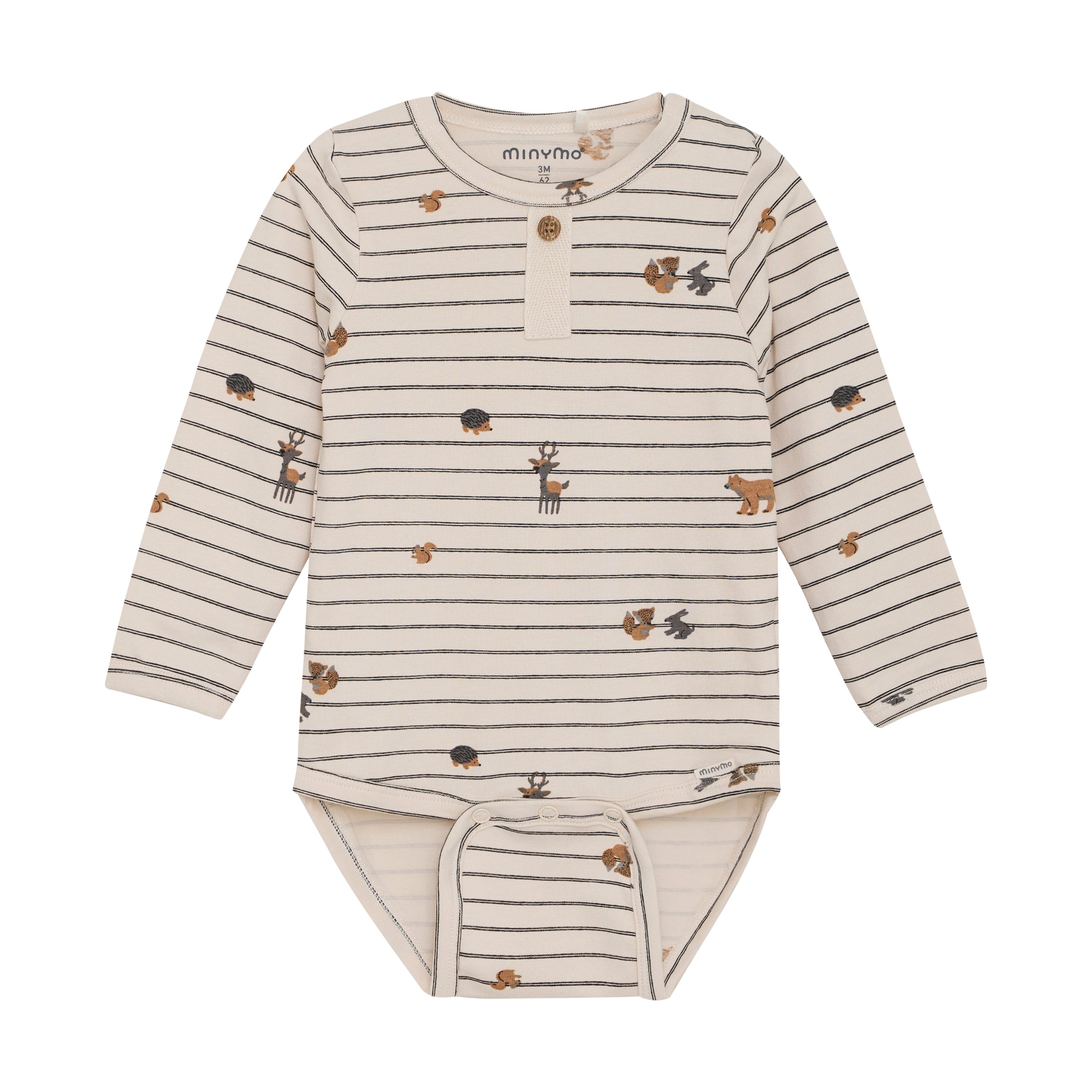 Minymo - Stripped Squirrel Long Sleeve Bodysuit - 3 Months