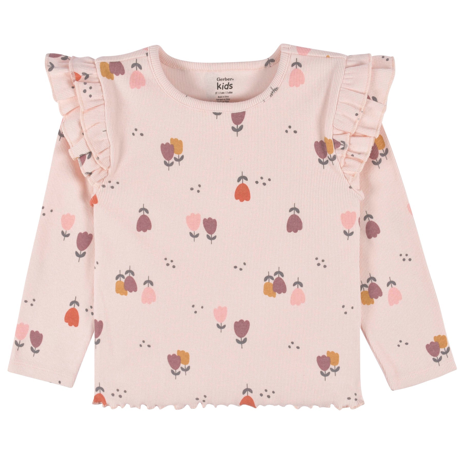 Gerber 2-Pack Girl Burgundy Floral Double Ruffle Tops