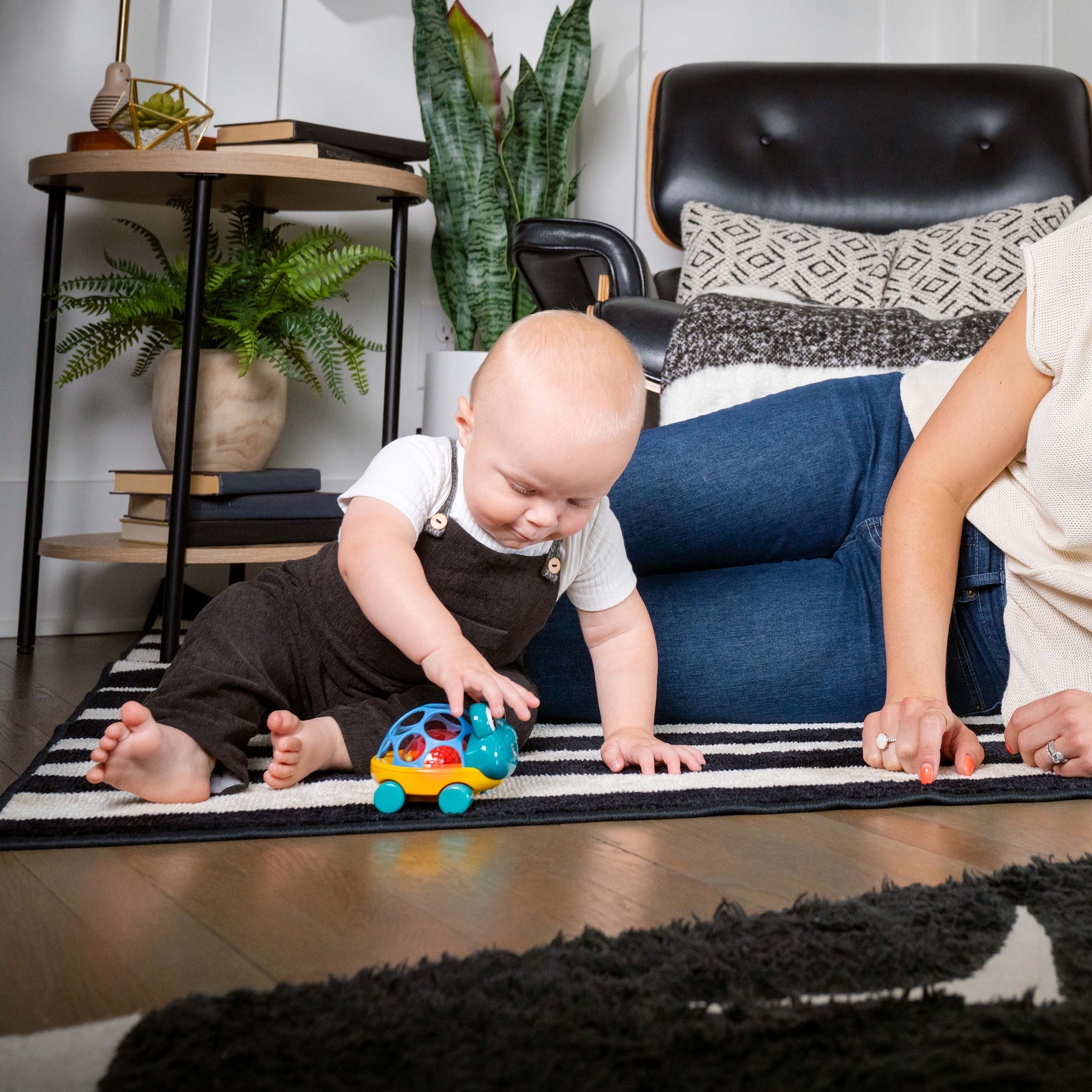 Drive baby’s sensory discovery with the Baby Einstein Curious Car Zen Oball Toy Car & Rattle. This light up toy car features dancing lights and a flexible frame to let baby easily grip and roll this colorful toy. Featuring Zen the Zebra from Baby Einstein shows and books, baby can discover new sights, sounds, or engage in pretend play as they roll Zen to new discoveries! As baby pushes the car, the dome’s colorful lights illuminate to reward baby and promote cause and effect discovery. A bendable frame helps support fine motor skill development as infants ages 3 months and up grasp and shake the toy. Perfect for tummy time, seated play, or on-the-go discovery, this lightweight toy makes a great gift for an infant boy or girl. Wipes clean. Dimensions: 3.5 x 3.5 x 4.5 inches.