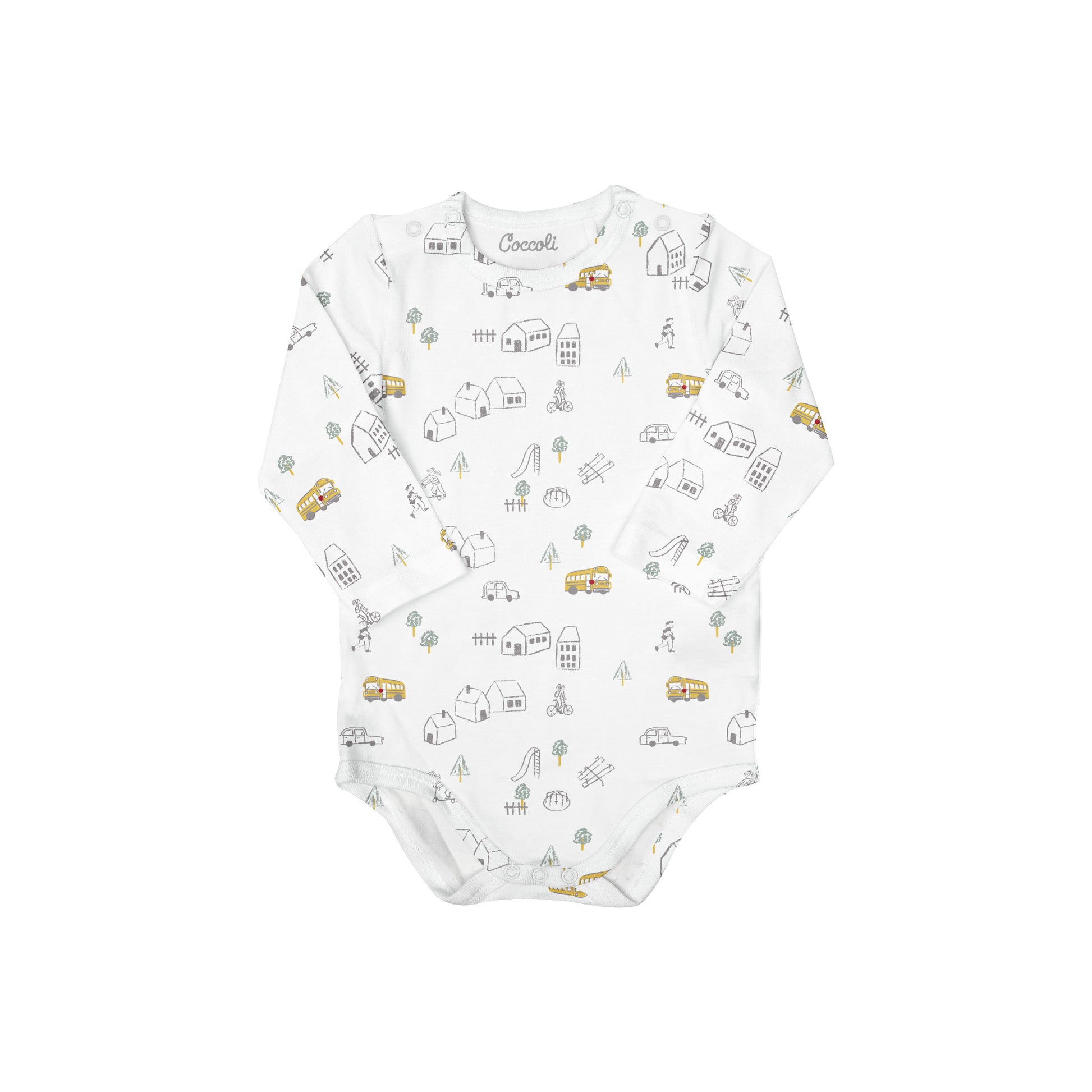 Coccoli Modal Romper Long Sleeve Bodysuit - School Bus 3M