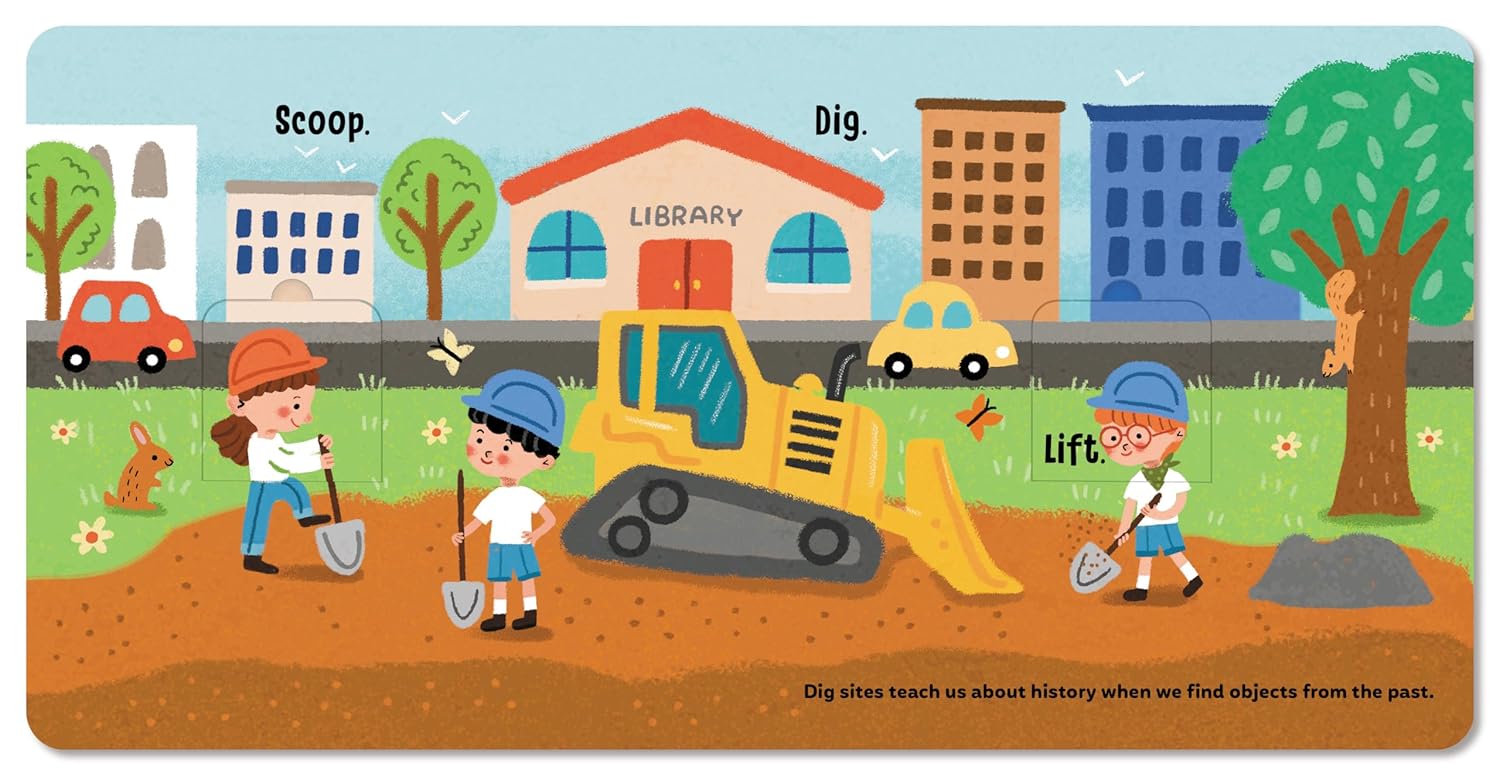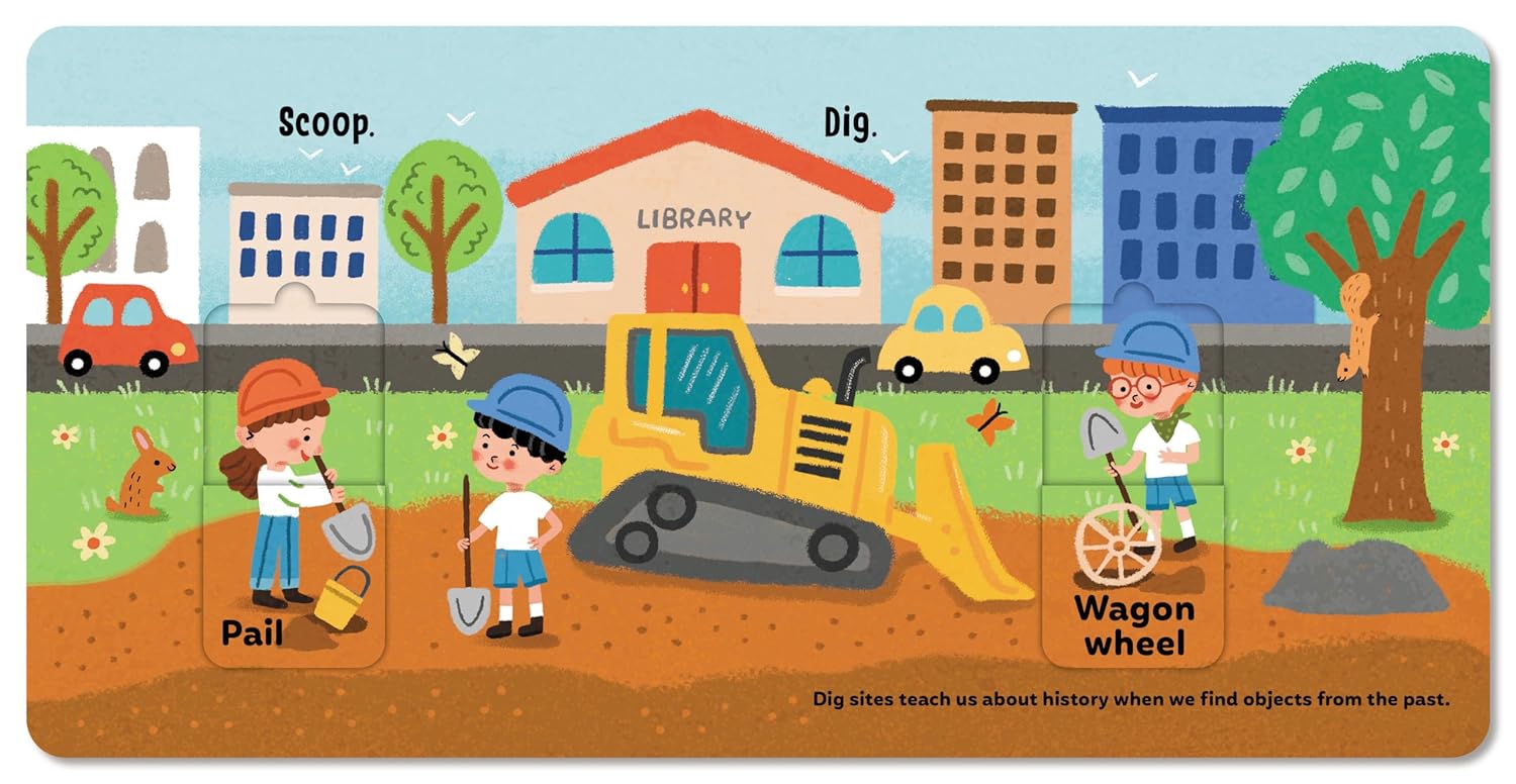 In this uniquely interactive board book, toddlers go "digging" for dinosaurs by lifting flaps of various sizes. They'll discover many interesting objects, both natural and man-made, along the way!