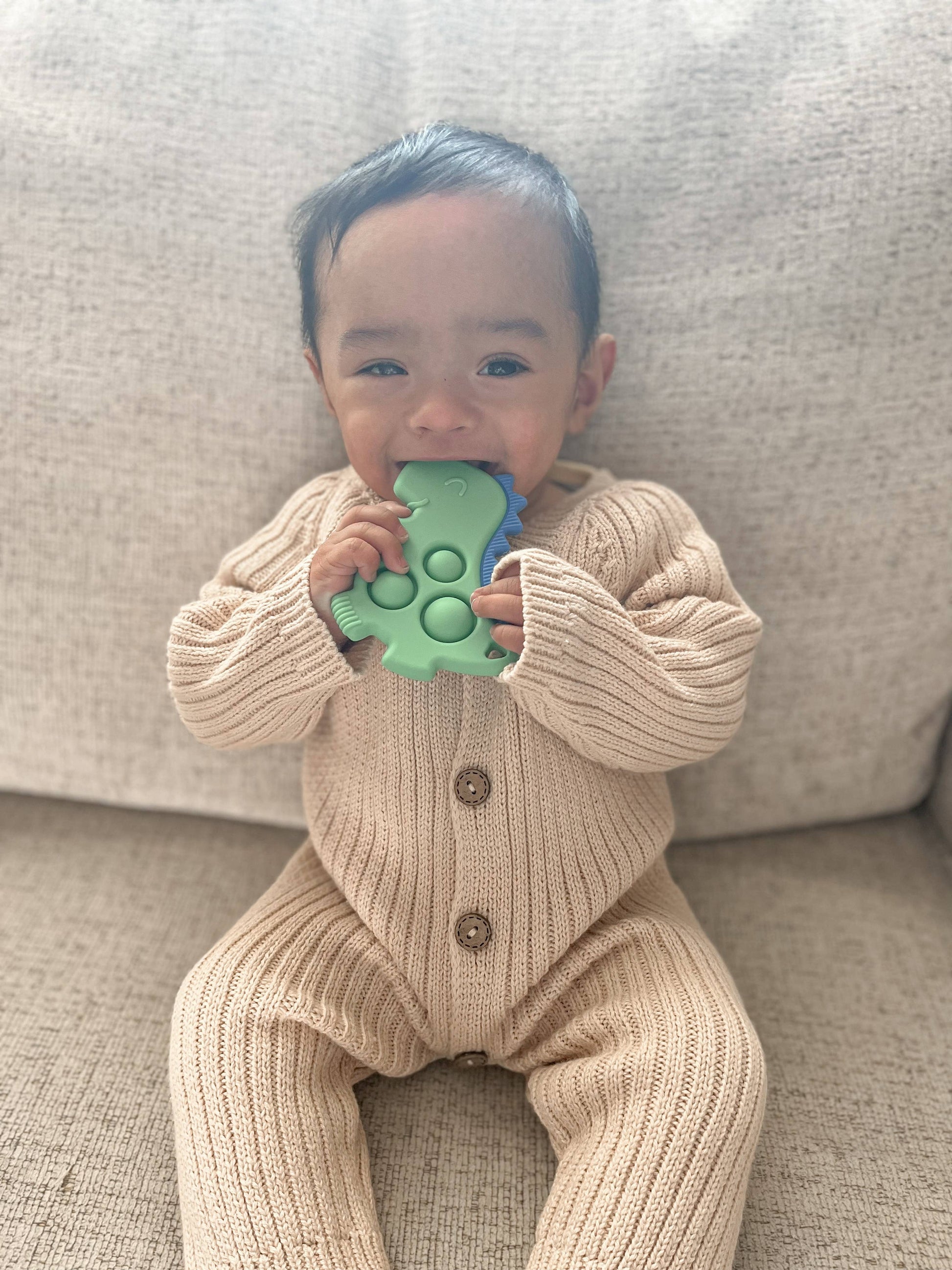 Chew on this! A pop of personality: a teething bestie & sensory toy all-in-one! Our Itzy Pop™ engages baby with popping sounds & movement while the raised textures gently soothe sore gums. Pop it in your bag or clip it for easy, fun, and safe relief while on-the-go.