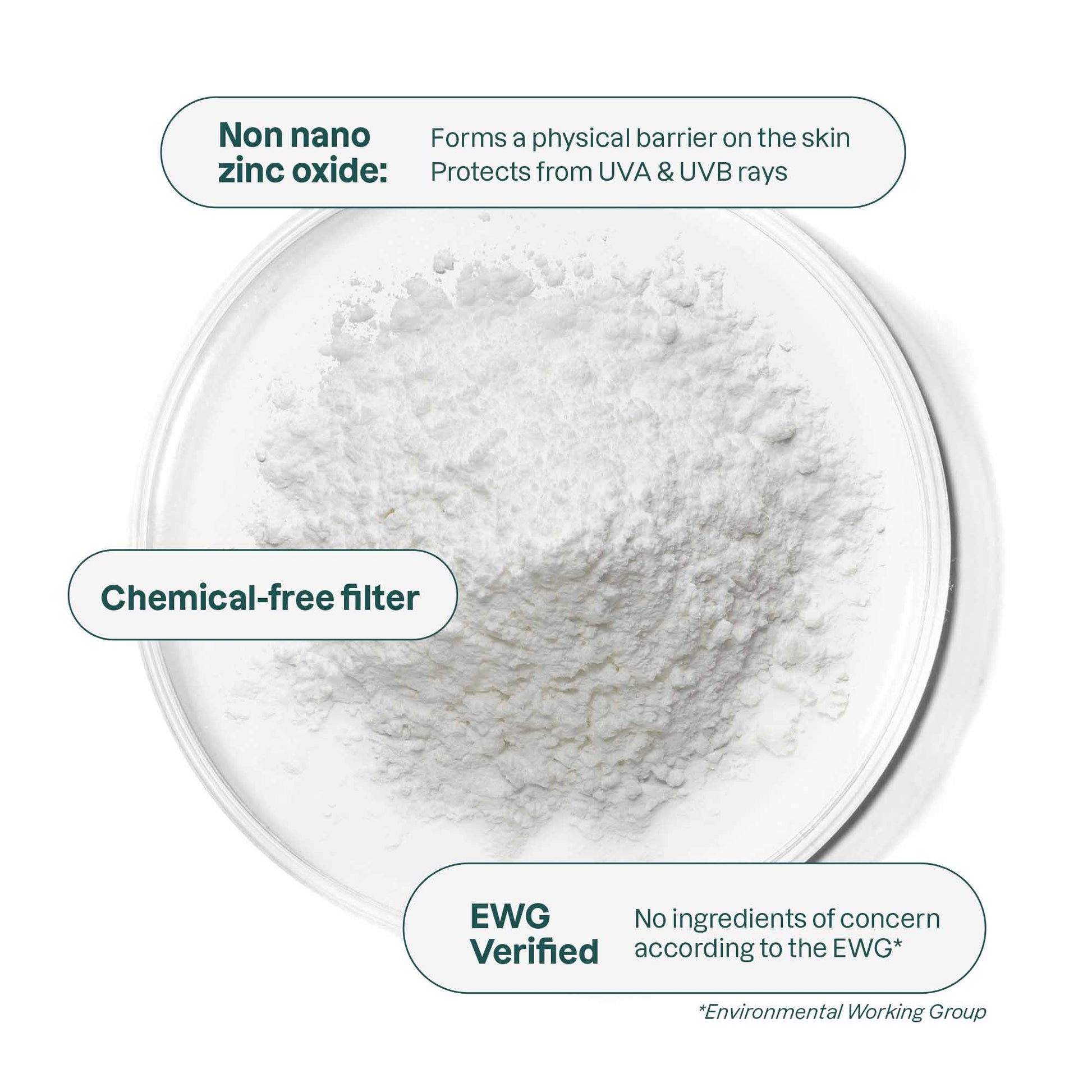 - Contains non-nano zinc oxide, a mineral filter that forms a reflective barrier to protect skin