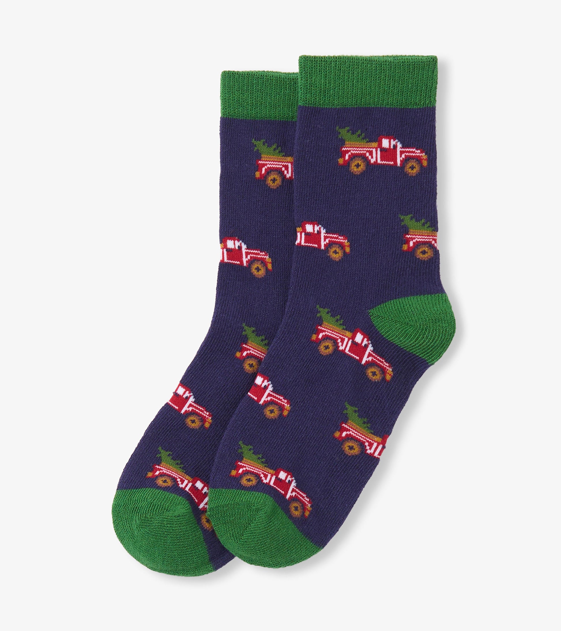 Little Blue House Red Truck Hauling a Tree - Kids Crew Socks