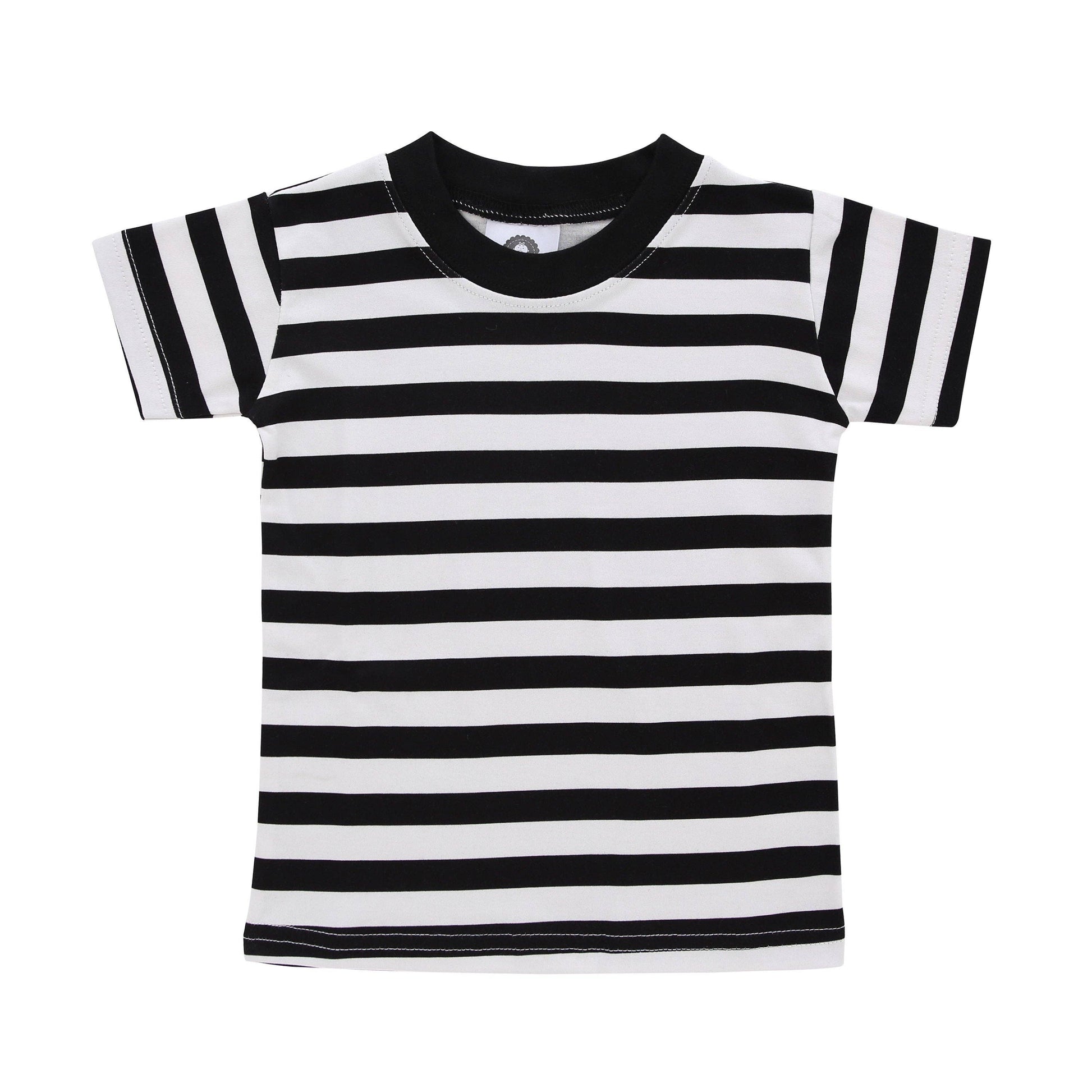 Bold black and white stripes adorn this cotton fabric, ensuring maximum comfort for any spooky occasion. The perfect addition to any little ghoul's wardrobe, this shirt is sure to make a statement. Whether wandering through the eerie halls of haunted mansions or just causing chaos in the backyard, your little one will look simply spook-tacular in this Pugsley-inspired top. Embrace the darkness and dress to impress with this black and white striped cotton tee!