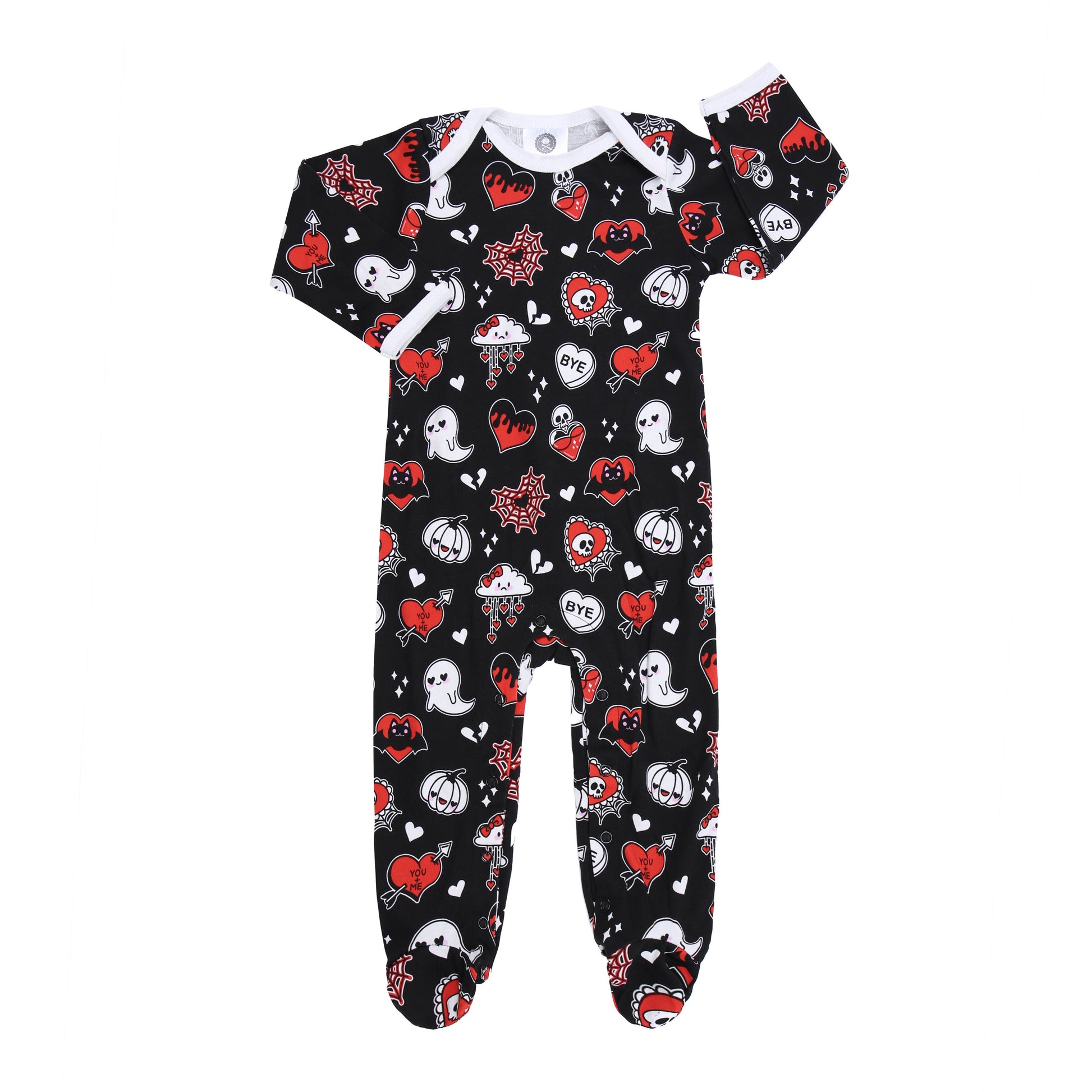 Metallimonsters - Hearts & Cobwebs printed baby sleepsuit