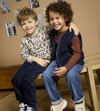 Lovely Minymo blouse in striped navy blue and white with a knitted texture. The blouse features a round neckline and long sleeves with ribbed edges. At the waist, a narrow band slightly rises on the sides. The inside is made of smooth woven cotton.