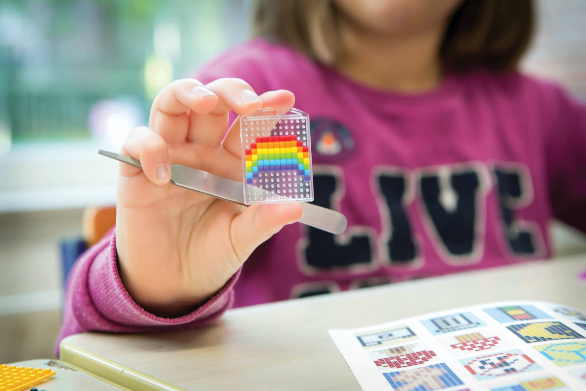 The pixel squares are sustainably produced from bio-plastics (bio-ethanol that has been converted from sugar cane).