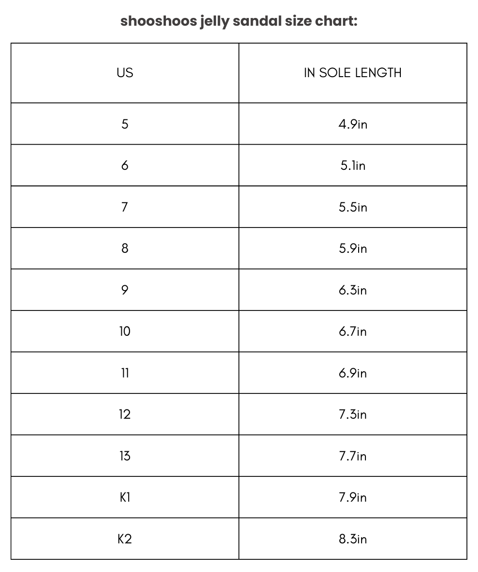 Classic jelly sandals made from soft and flexible eco-friendly PVC material. Designed for comfort and mobility. Adjustable popper buckles for ease of use. Available in a wide range of colors, from soft pastels, to summer brights and rainbow glitter. Features Ultra-lite PVC upper Soft and flexible soles ensuring natural foot development Quick release popper buckles for easy on-off. Waterproof. Fun sole design details