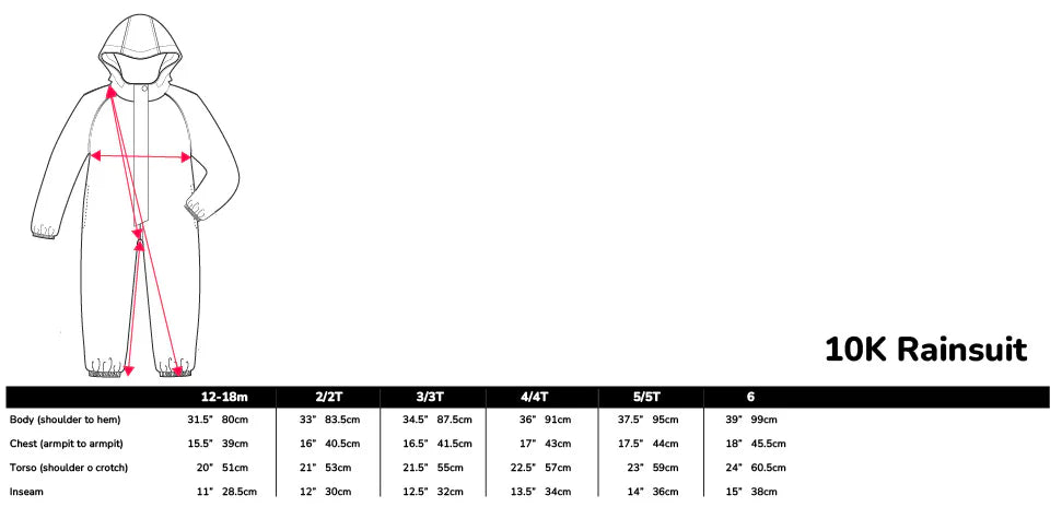Lightweight weather protection - Rated at 10,000mm waterproof and fully seam sealed to prevent leaks, our 10K Rainsuit provides all over wind and rain protection for our junior explorers. Elastic wrist & ankle cuffs, storm zipper cover, reflective features and contoured hood for functionality and comfort. Say goodbye to soggy clothes and hello to epic outdoor adventures!