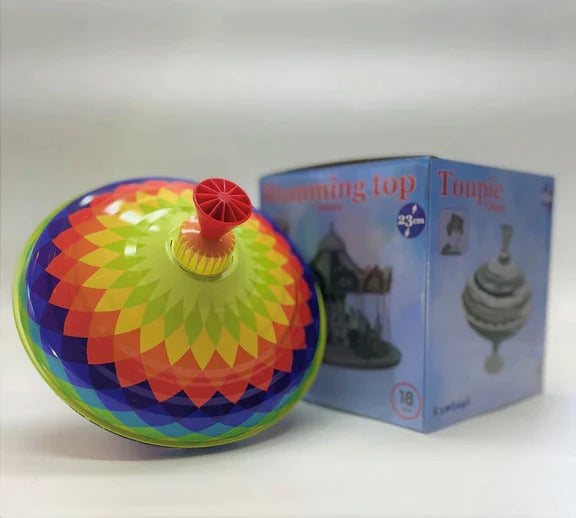 - SUBTLE HUMMING TUNE: As it spins, Multicolor Choral Spinning Top Toy makes a light harmonic humming melody that gets louder the faster it spins.