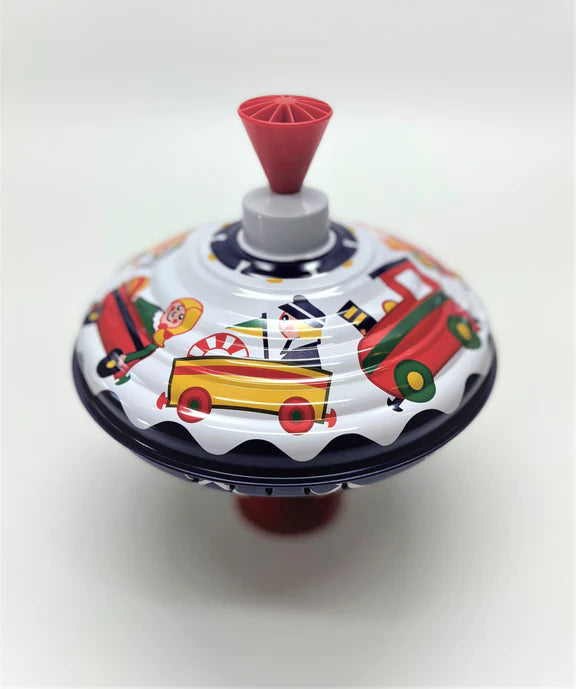 - HIGH-QUALITY TIN: Made with high-quality tin and plastic, this spinning top toy is durable and built to last.